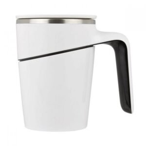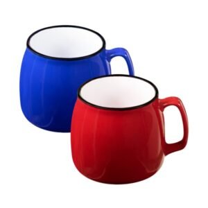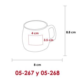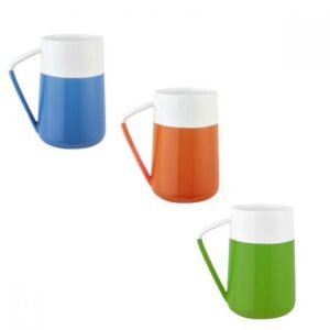Taza de cerámica bicolor con exterior blanco mate e interior en color brillante. Se puede acomodar de forma vertical. CAP. 15 OZ.