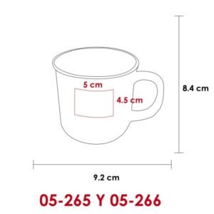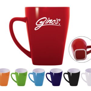 Taza con base cuadrada exterior a color, interior en blanco. CAP. 12 OZ.